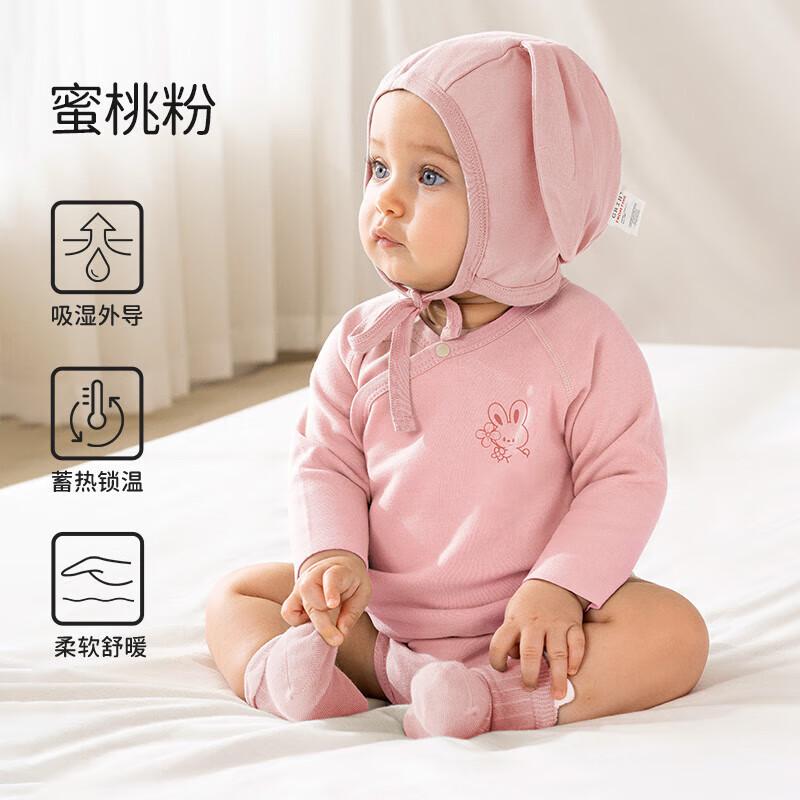 欧孕(OUYUN)德绒婴儿包屁衣秋冬打底内衣保暖新生儿三角哈衣宝宝长袖爬服 蜜桃粉【7A抗菌-真德绒真保暖】 59cm 【建议身高52-59cm】