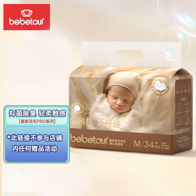 bebetour 皇家羽毛纸尿裤 M34片(6-11kg)超薄干爽透气泡泡腰围尿不湿