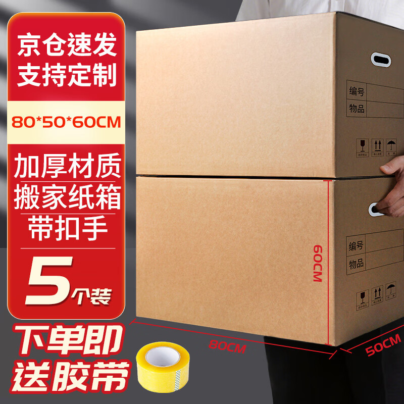 简意搬家纸箱子加厚加硬打包整理家用大容量快递包装纸板收纳瓦楞定制80*50*60带塑料扣手