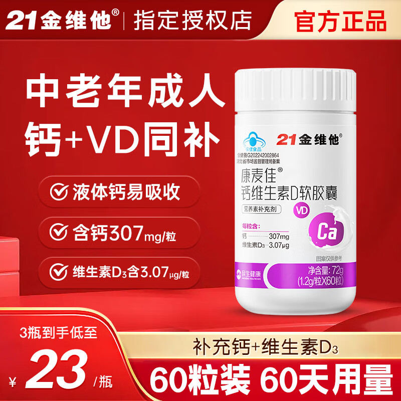 21金维他康麦佳钙维生素d软胶囊液体钙中老年男女士成人儿童青少年补钙 【尝鲜装】21金维他液体钙60粒-1瓶尝鲜