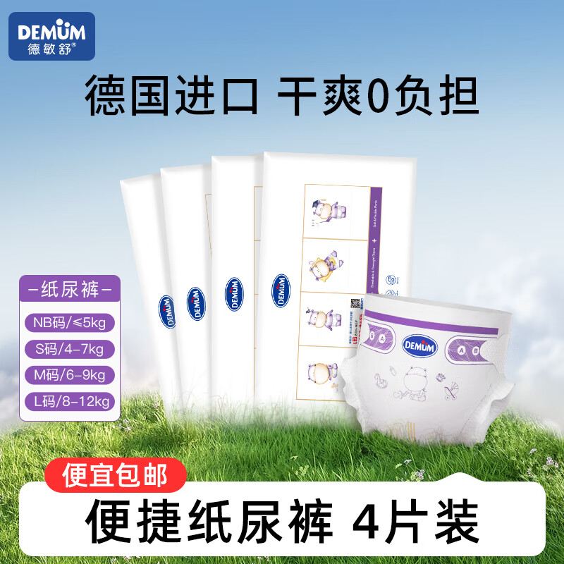 德敏舒(DEMUM)原装德国进口纸尿裤试用装独立包装 纸尿裤试用装NB*4片(小于5kg)