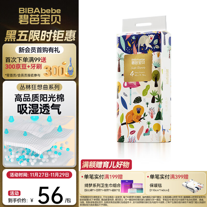 碧芭宝贝纸尿裤丛林狂想曲系列婴儿成长裤宝宝加大号尿不湿超薄透气 纸尿裤L42片(9-14kg)