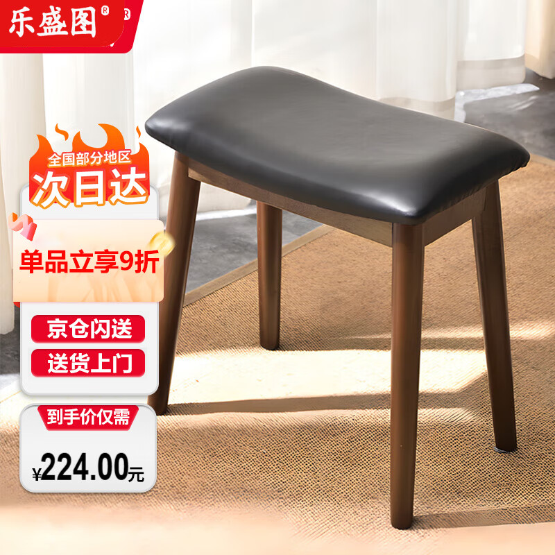 乐盛图实木凳子梳妆凳现代简约化妆马鞍凳客厅软包茶凳沙发小凳子LC626