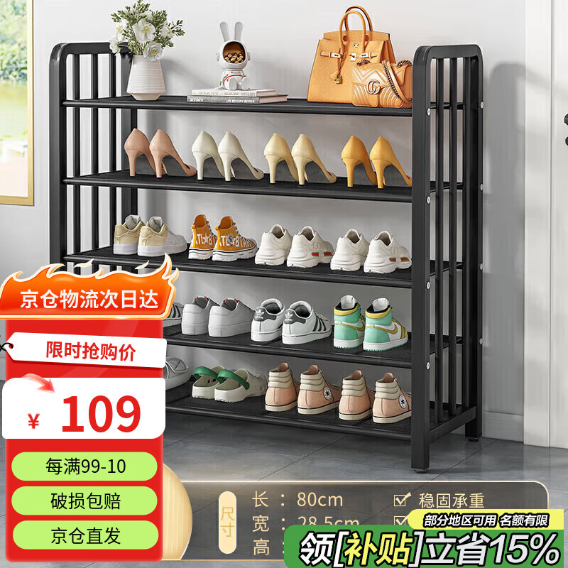 顺优鞋架家用门口多层室内卧室鞋柜出租房收纳 80cm 五层 黑色SY-901