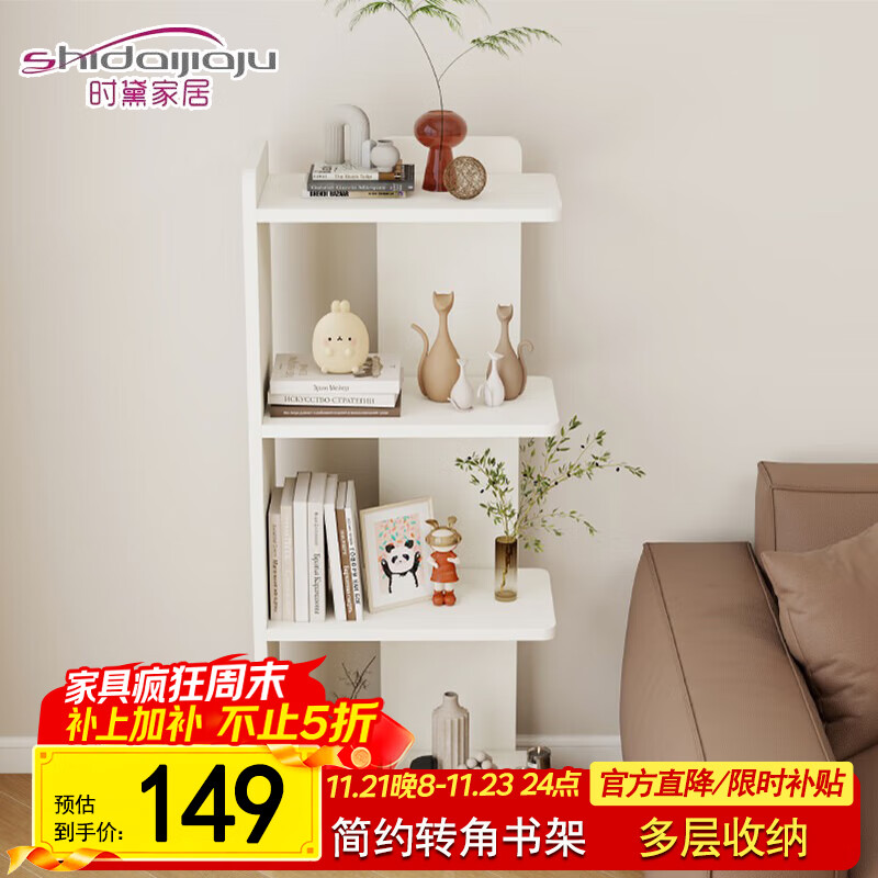 时黛家居转角书架简易落地置物架家用床头书柜一体靠墙拐角架子