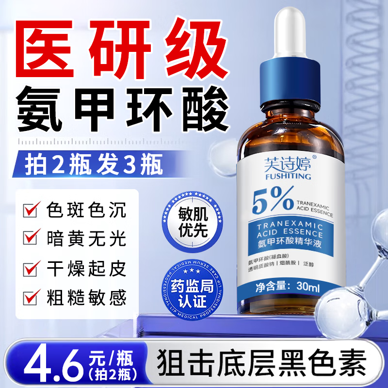 芙诗婷氨甲环酸精华液传明酸祛黄褐斑嫩白提亮改善暗沉肤色淡斑黑色素 氨甲环酸精华液30ml*1【拍2发3】