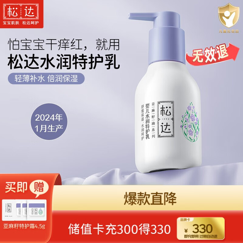 松达婴儿身体乳宝宝山茶油乳液儿童润肤乳秋冬滋润补水保湿乳 【倍润保湿】亚麻籽特护乳118g