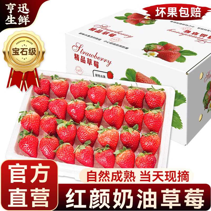 亨迅大凉山红颜牛奶油99草莓非丹东大草莓新鲜现摘香甜水果生鲜 3斤家庭装【净重2.5斤】15g+