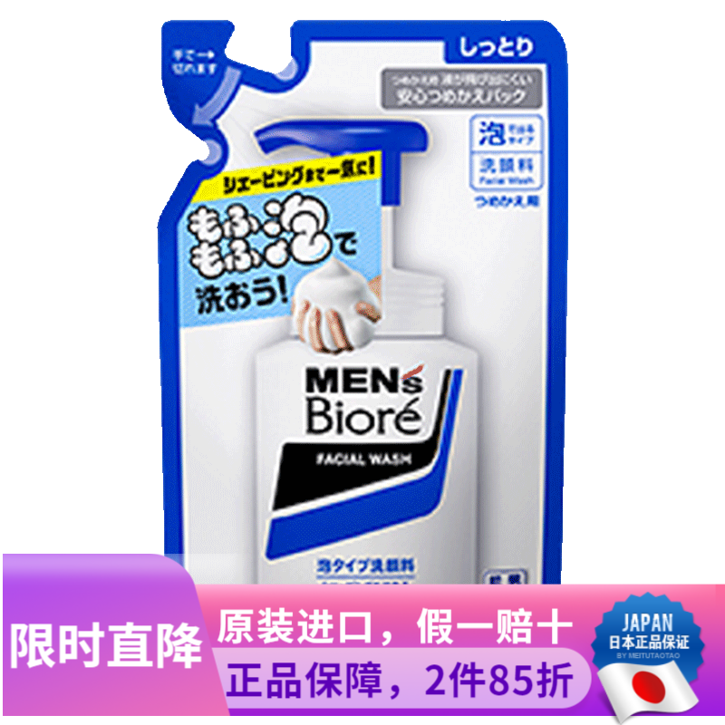 碧柔(Biore) 日本原装 花王碧柔男士专用清爽保湿深层清洁控油泡泡洗面 深层清洁替换装 130ml