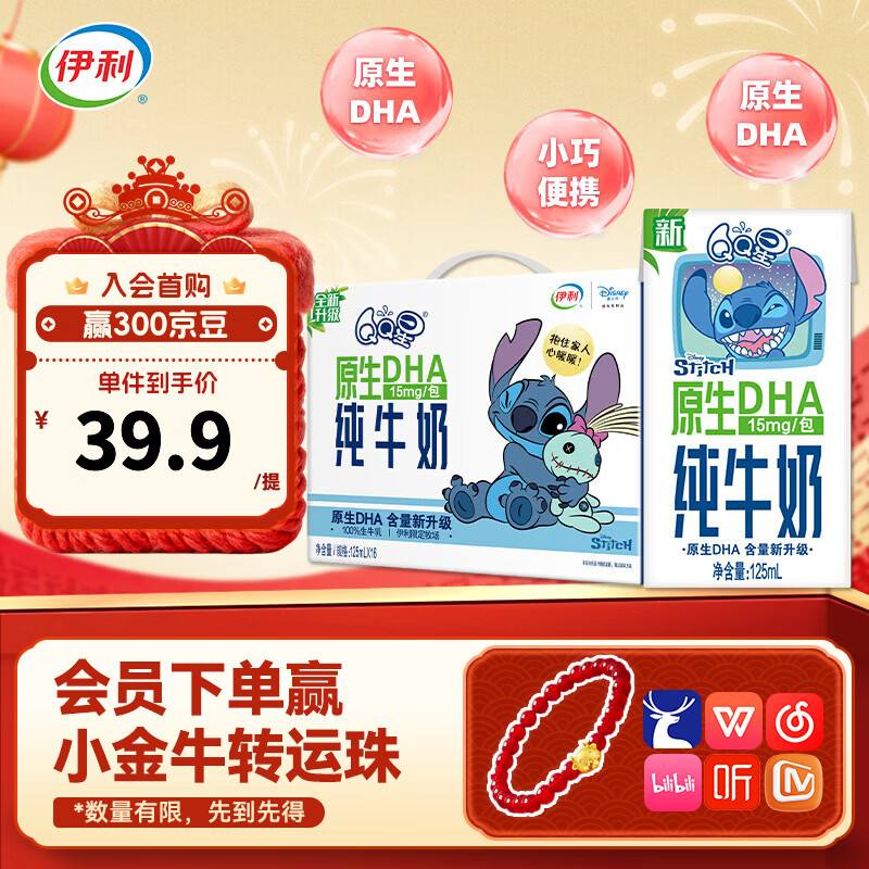 QQ星原生DHA纯牛奶125mL*16盒/箱 儿童牛奶 礼盒装 10月产