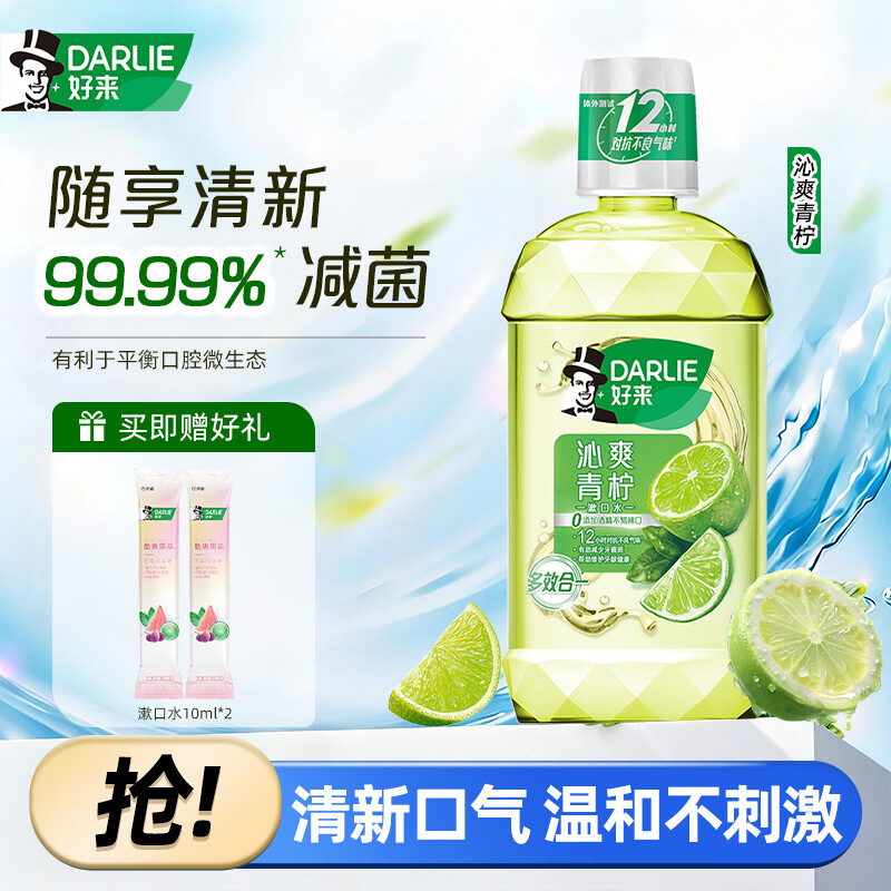 好来(DARLIE)黑人清新绿茶零酒精漱口水温和不刺激不辣便携装茶味果香漱口水 沁爽青柠250ml