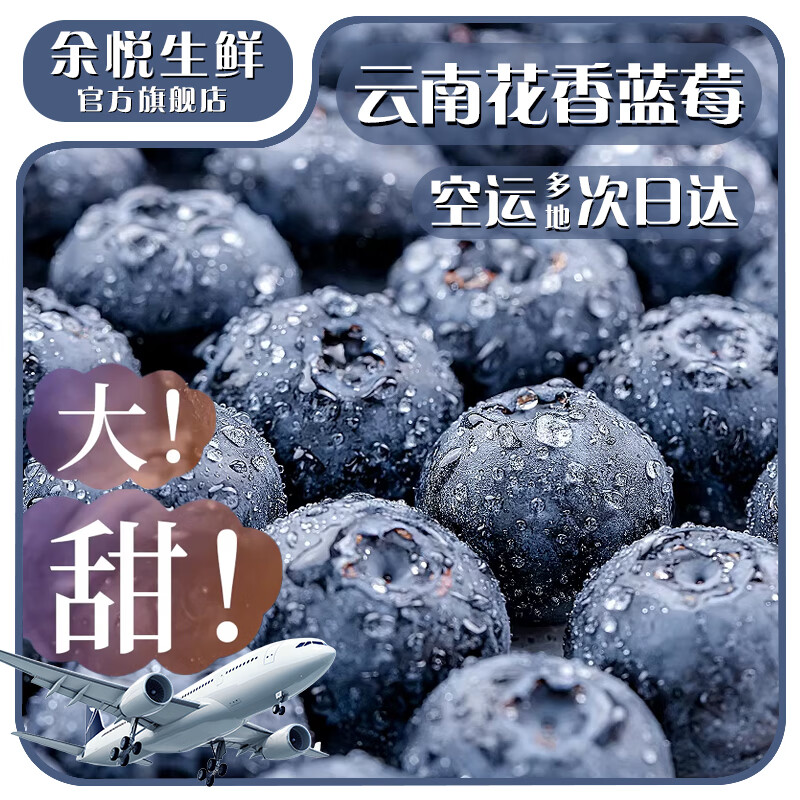 余悦云南蓝莓【空运直达 多地次日达】现摘新鲜国产高山花香蓝莓鲜莓 2盒【单果18mm+】125g/盒(净100g)