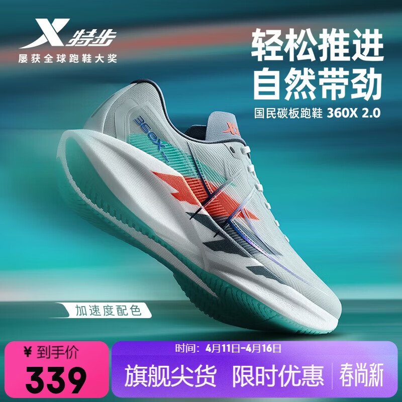 特步【加速度】360X 2.0入门级竞速碳板透气轻便减震体考回弹男跑鞋