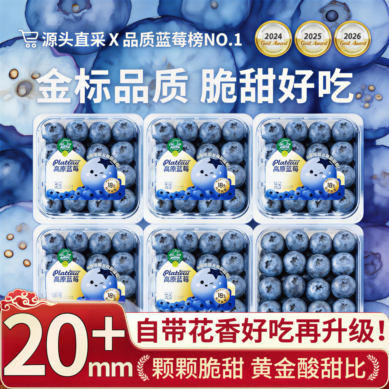 鲜级佳 云南花香蓝莓【SF京东/普快多地次日达】巨无霸新鲜超大蓝莓礼盒 【80%选】金钻级丨巨大果18mm+ 125g*4盒【巨划算-80%人选】净400g*