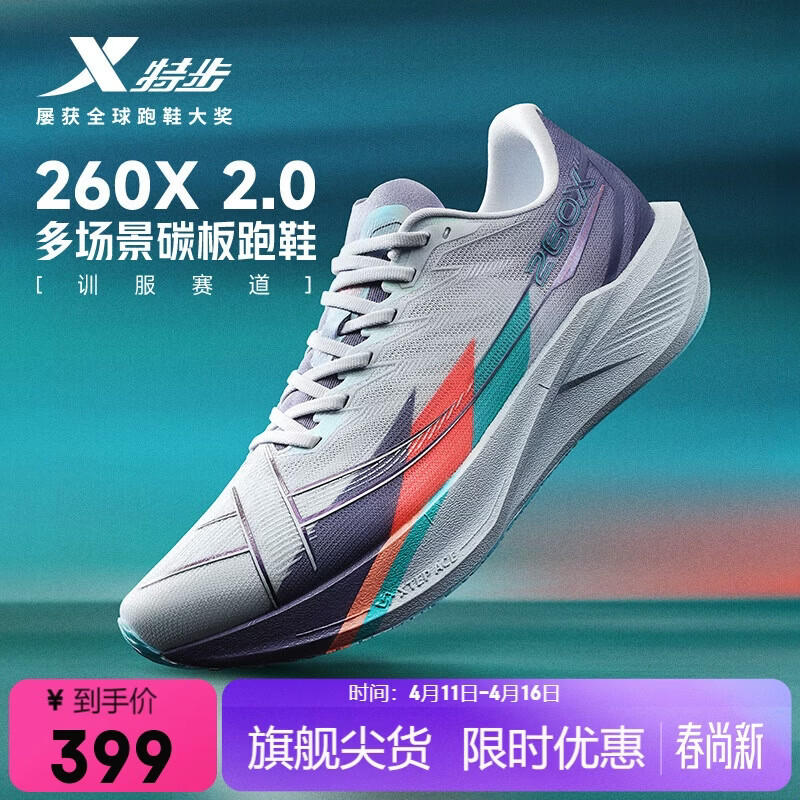 特步【加速度】260X 2.0马拉松竞速碳板网面透气轻便减震回弹男跑鞋
