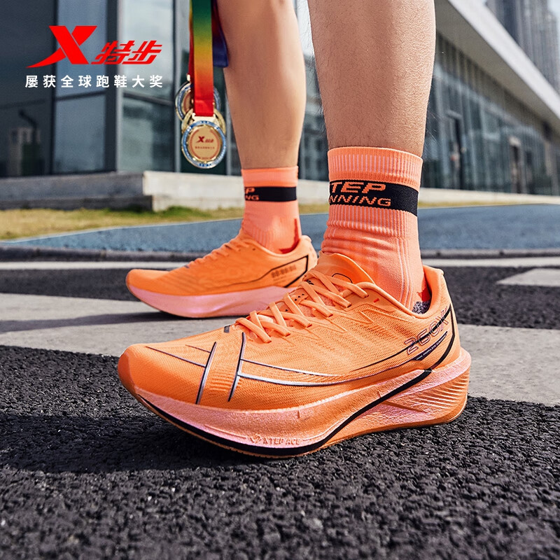 特步160X6.0跑步鞋男马拉松全马跑步鞋竞速碳板耐磨透气回弹运动鞋女 激光红/经典白【男】 41.5