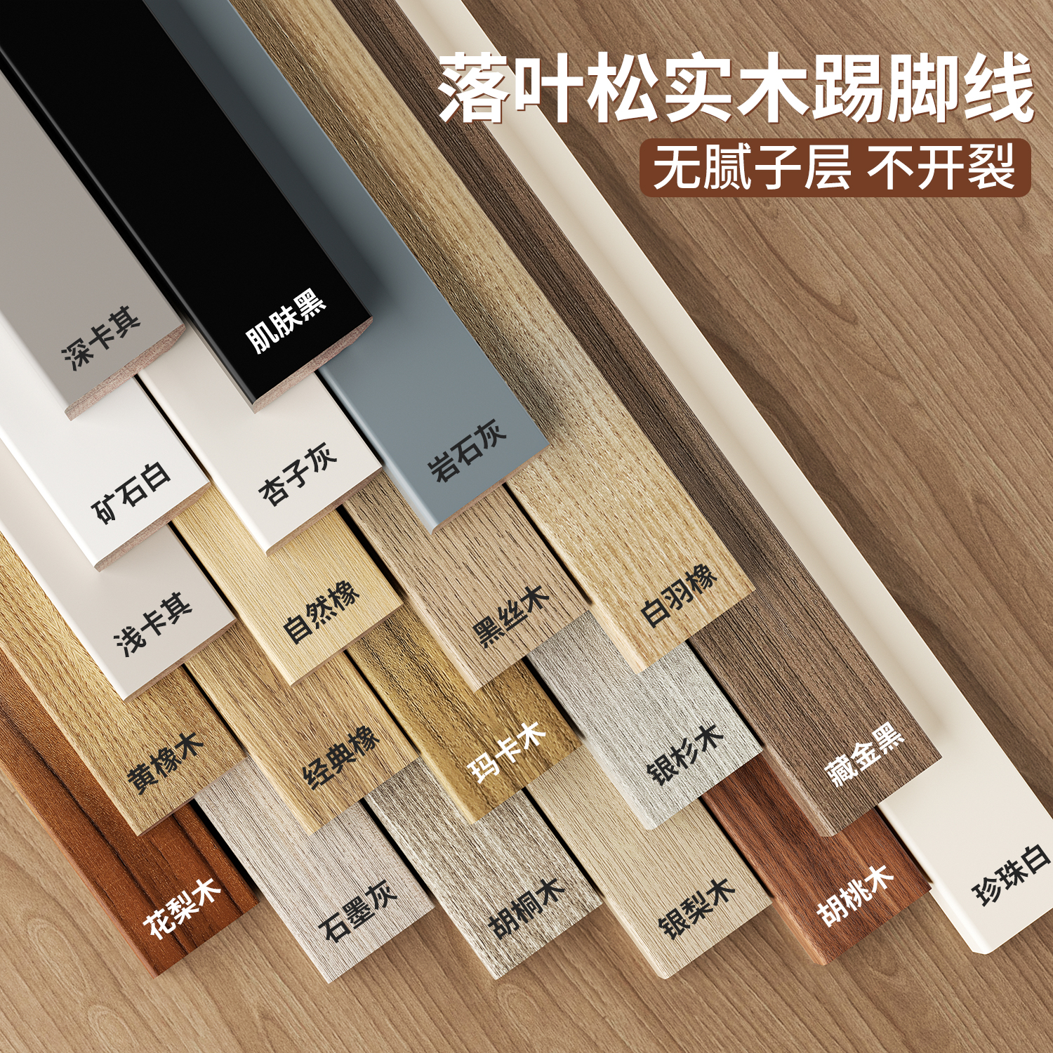 仓藏纯实木踢脚线木质地脚线木纹白色黑色菱花白奶油风免漆贴脚线 免费拿样【1-4个颜色 收货全返】