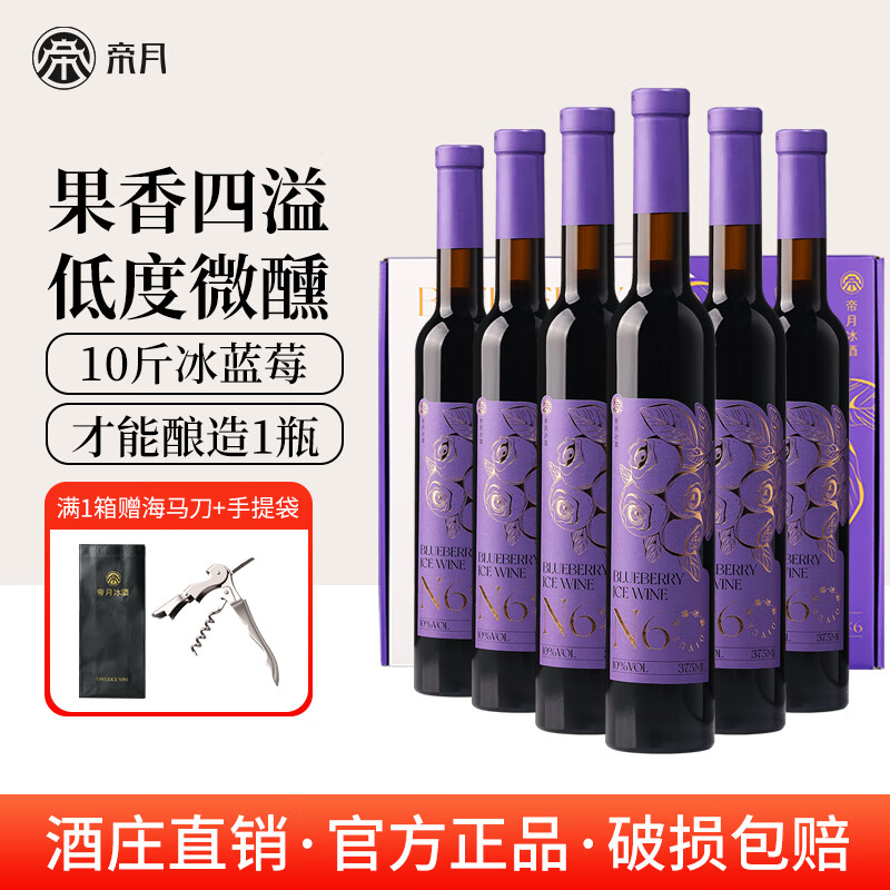 帝月蓝莓冰酒N6低度微醺女士甜型果酒国产红酒整箱6瓶装送礼长辈 【整箱】冰酒N6 375ml*6瓶(赠开瓶器)