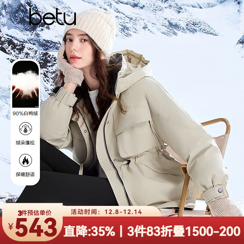 百图betu女装冬季新款羽绒服连帽宽松派克服羽绒外套女2411T09 卡其色 L