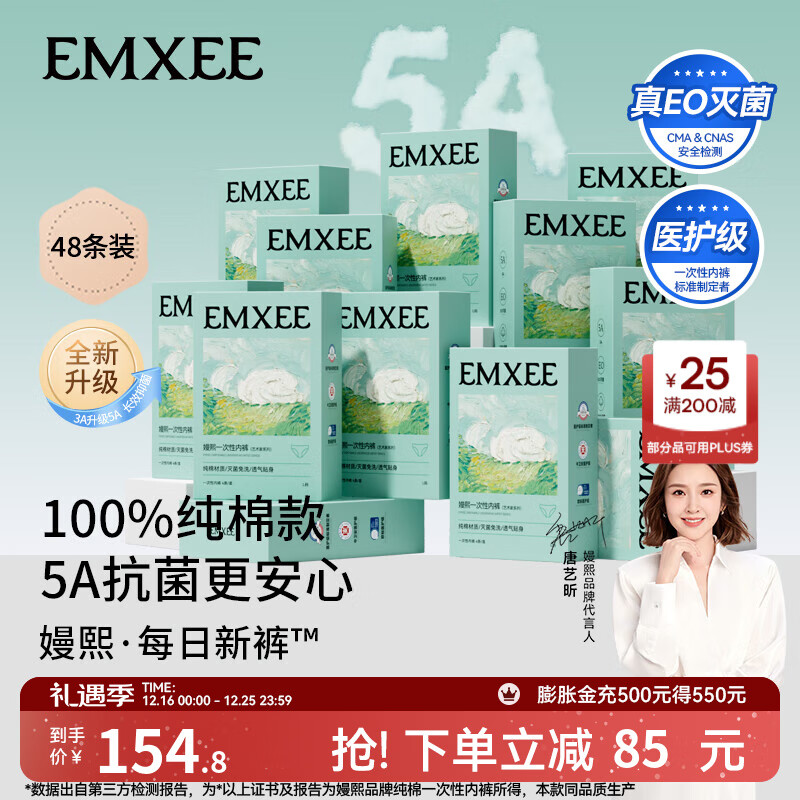 嫚熙(EMXEE)孕妇内裤产妇一次性内裤旅游出差月子便携装免洗纯棉内裤 【5A抗菌纯棉】12盒48条 XXL 女(120-150斤)男(150-170斤)