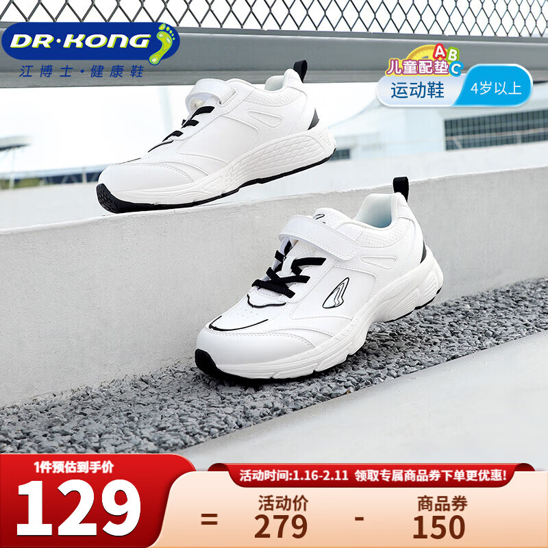 江博士秋季中大男女童透气儿童运动鞋 简约时尚国货健康跑步鞋 米/黑 35 脚长约21.6-22.1