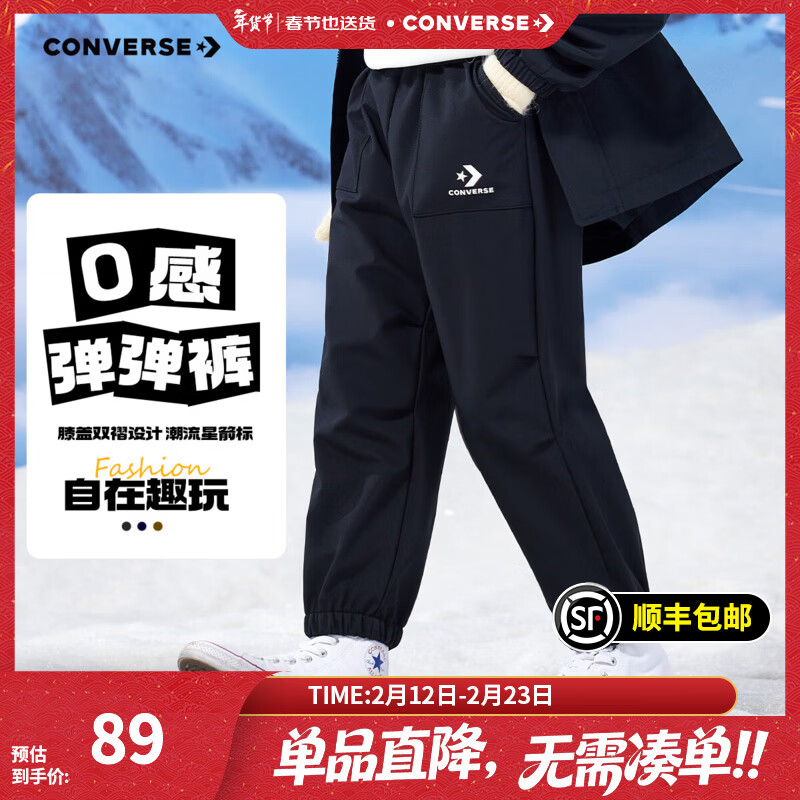 Converse匡威儿童长裤秋冬加绒保暖裤束脚运动裤梭织裤子男女童工装裤 正黑色【南方秋冬厚款】 160 /69 【建议身高158-170cm】
