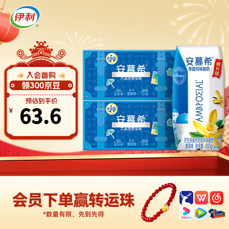 伊利安慕希香草味希腊风味酸牛奶 营养早餐牛奶【便携精巧装】 205gx10盒x2箱