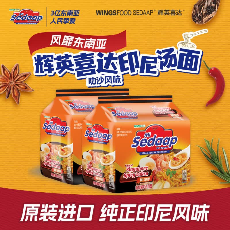 辉英喜达sedaap叻沙风味速食汤面415g*2袋 辛辣奶香方便面泡面(10包)