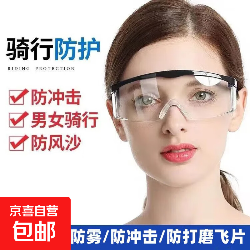 【秋冬防护】护目镜防护眼镜劳保防风防尘防飞沫透明款男女通用 黑色 1个装