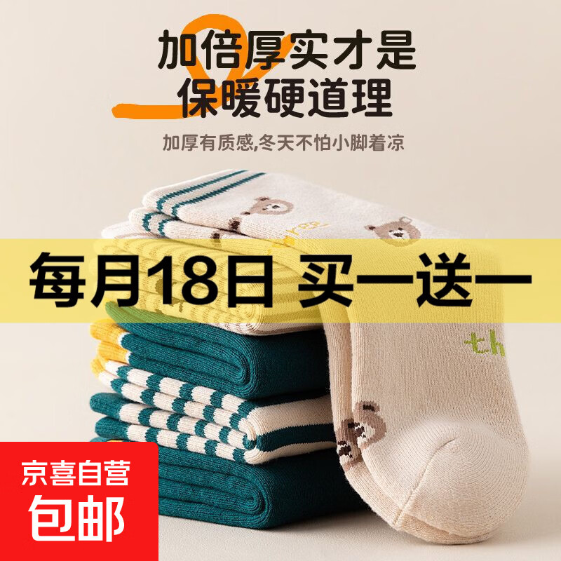 儿童冬季袜子男童加厚加绒中大童秋冬款毛圈男孩学生保暖中筒地板 小熊毛圈1双装 随机一双 1双 6-8岁 27-32码