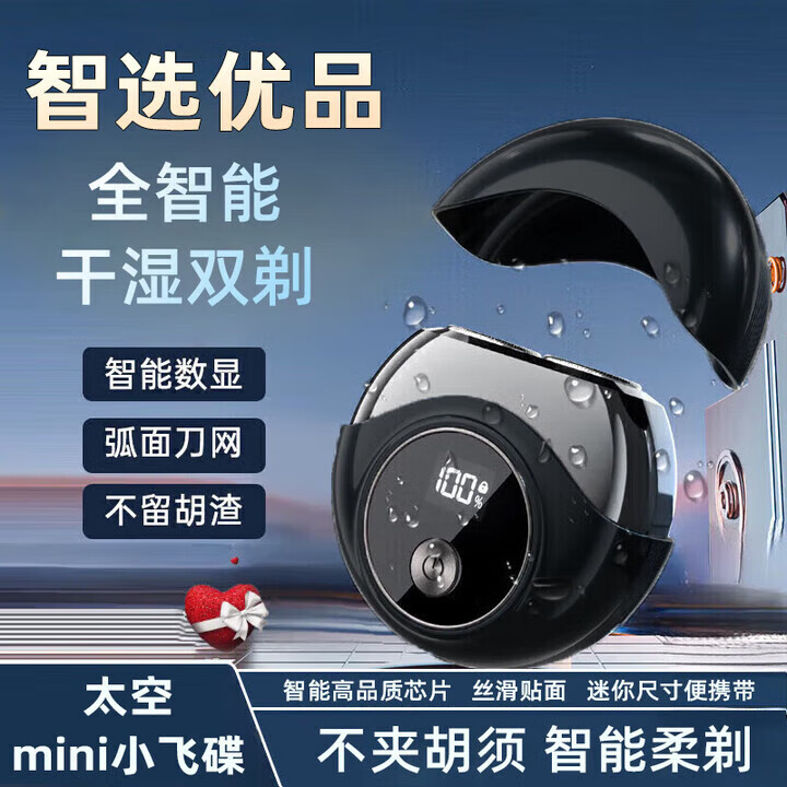 米飞利蒲 电动剃须刀刮胡刀旋转式胡须刀小钢炮须刨便携迷你生日父亲节礼物七夕情人节礼物送男友 子夜黑【研磨36叶双刀头] 干湿双剃+智能数显+弧面刀网+不留胡渣