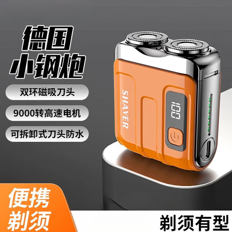 米飞利蒲电动剃须刀数显男士迷你刮胡可水洗便携精钢旅行胡须刀不残留送父亲节礼物520送男友 橙色 智能数显+不留黑点