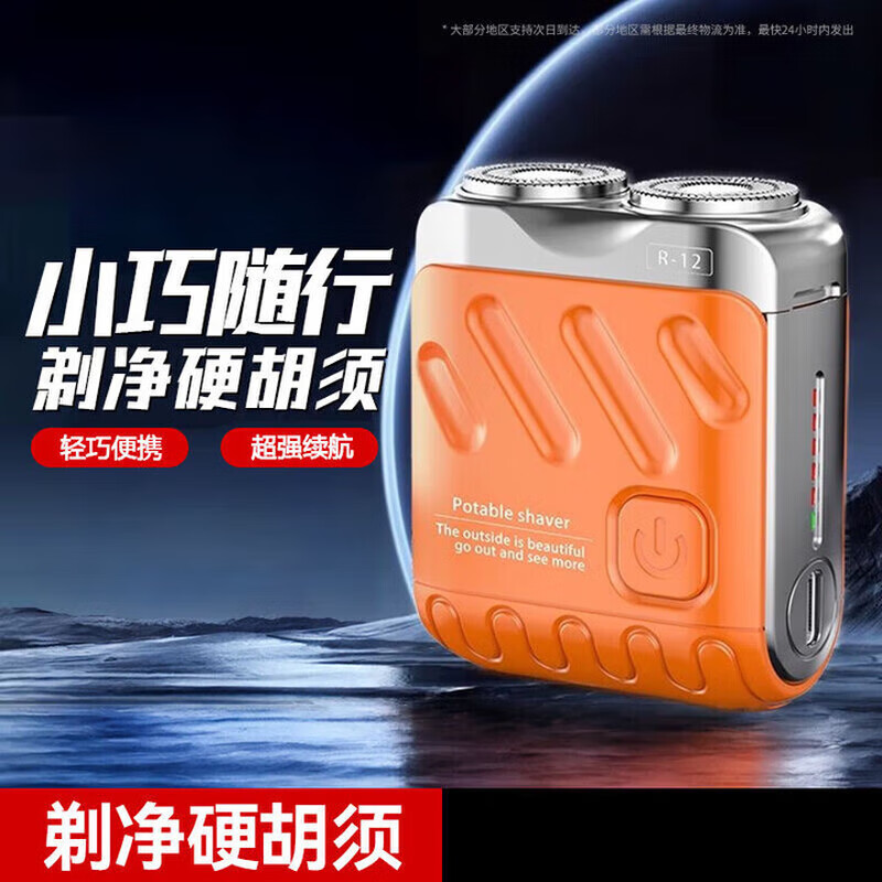 米飞利蒲剃须刀便携式电动刮胡刀可充电可水洗男士剃须刀送爸爸送男友生日父亲节礼物 橙色 迷你便携+不卡胡须