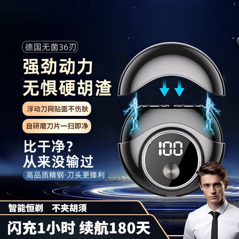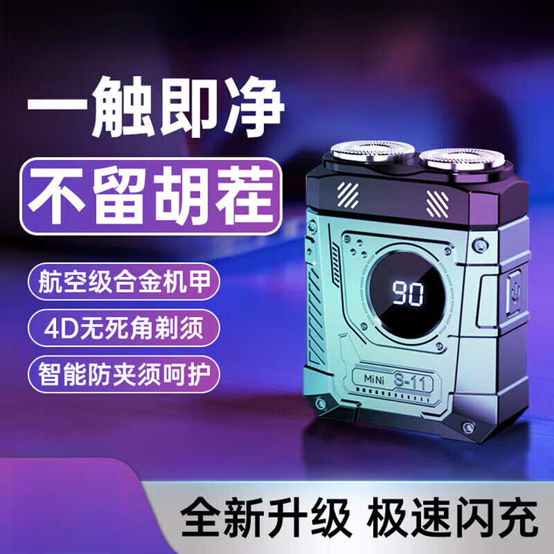 米飞利蒲剃须刀电动便携式刮胡刀迷你机甲胡须刀双头强力快充七夕送男生节日礼物 绿色【18叶精钢刀头|智能数显】 全身水洗+干湿双剃+超长续航