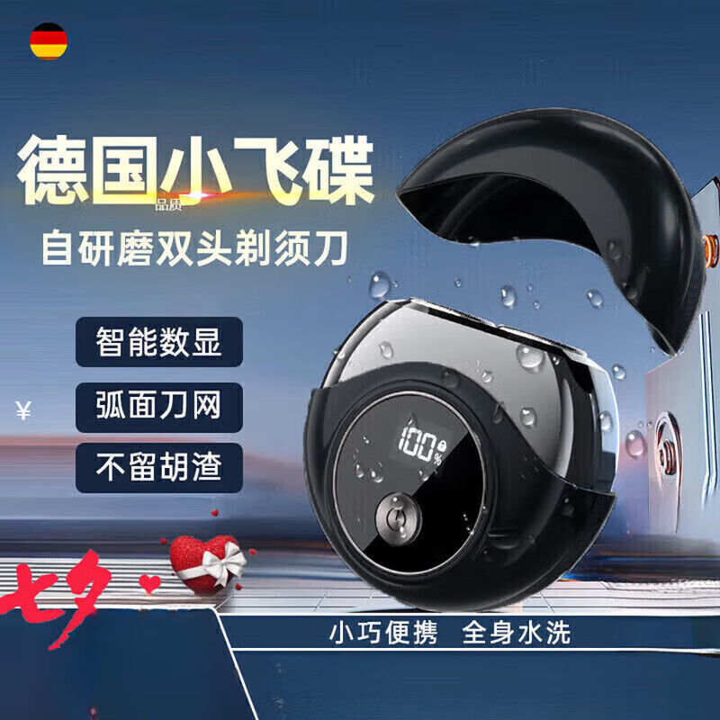 米飞利蒲小陨石电动剃须刀男士刮胡刀便携款迷你刮胡须刀中秋节日礼物送男友送老公 小飞碟黑色【礼盒套装】 迷你便携+智能显数+节日送礼