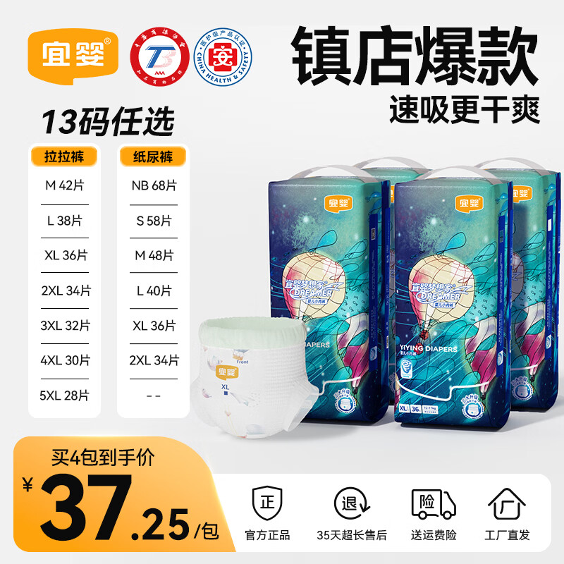 宜婴新梦想家拉拉裤宝宝学步裤婴儿小内裤男女通用超薄柔软透气尿不湿 拉拉裤3XL32片*4包