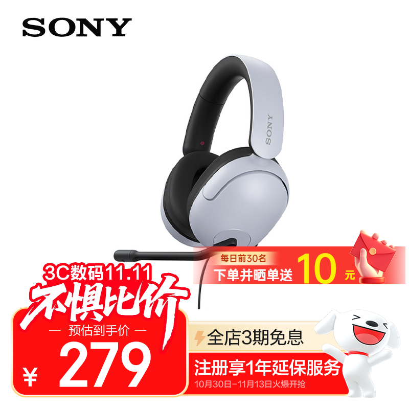 索尼(SONY)英纵INZONE H3 电竞游戏耳机 虚拟7.1声道 有线头戴式耳麦 高清麦克风 电脑笔记本网课游戏礼物 白色