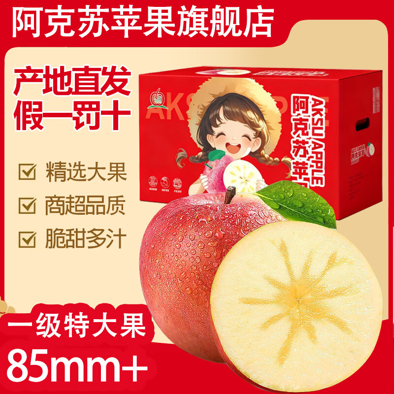 阿克苏苹果源头直发新疆阿克苏冰糖心苹果新鲜当季应季时令丑苹果水果红富士 10斤【精品特大果】单果85-90mm 净重8.5斤