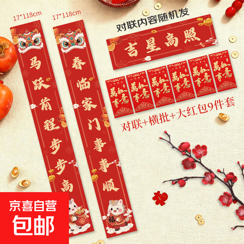 2026 马年 新款春节 红包春联大礼包 礼盒对联福字红包新年福字门贴家用 宣纸对联万事如意 对联+大红包9件套