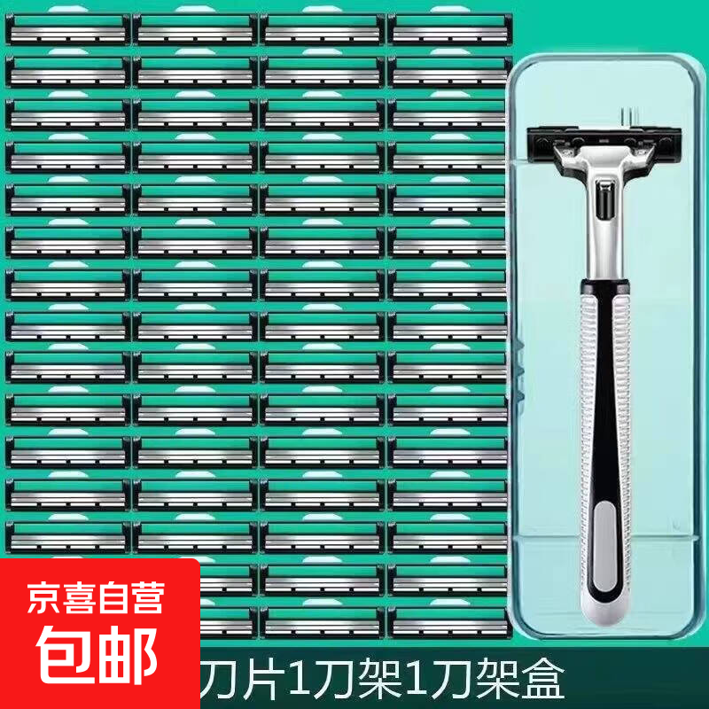 德国进口双层剃须刀片手动刮胡刀男老式胡子刀胡须刀胡刀不锈钢刮脸刀剃胡刀架替换锋利2层刀头剃胡子防刮伤 【升级款双层】1支刀架+60个刀片