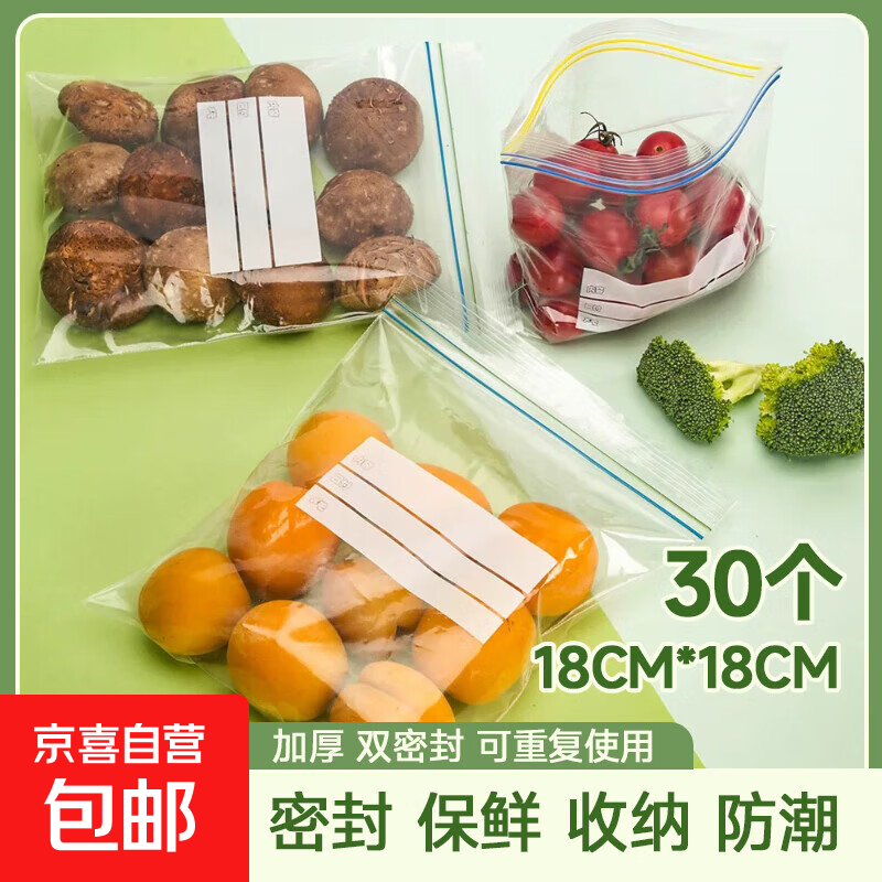 食品袋密封袋分类保鲜袋分装双拉链冷冻袋中药袋密实收纳袋分装袋 (M码18*18cm) 30只