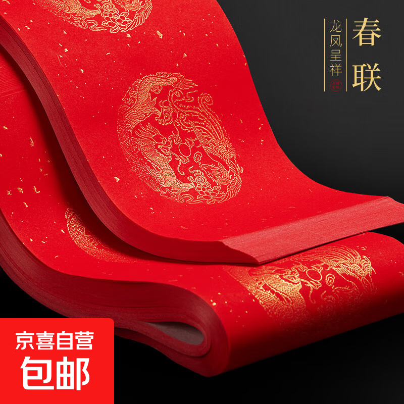 对联纸对联专用纸2026新款马年春联描红毛笔书法五七言红纸宣纸过年万年红写福字作品纸小区家庭款 龙凤17*105cm七言5副+龙凤斗方5张【活动专享】