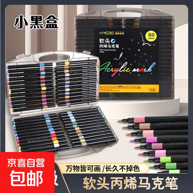 软头丙烯马克笔学生专业美术小学生专用不透色水彩笔儿童无毒水洗 正品:【3色丨丙烯马克笔】精致黑杆 颜色随机 正品:【精致黑盒】软头丙烯马克笔