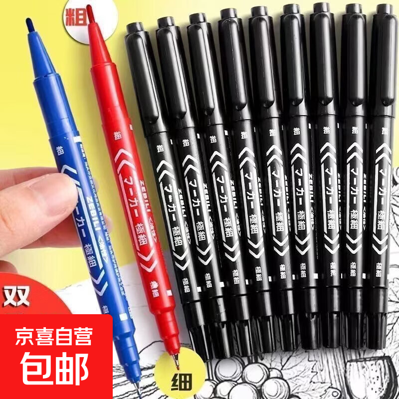 勾线笔水性小双头记号速干大头笔标记笔小双头黑色儿童绘画防水不掉色水性美术勾边笔 绘画勾线【黑色】2支装/双头/水性