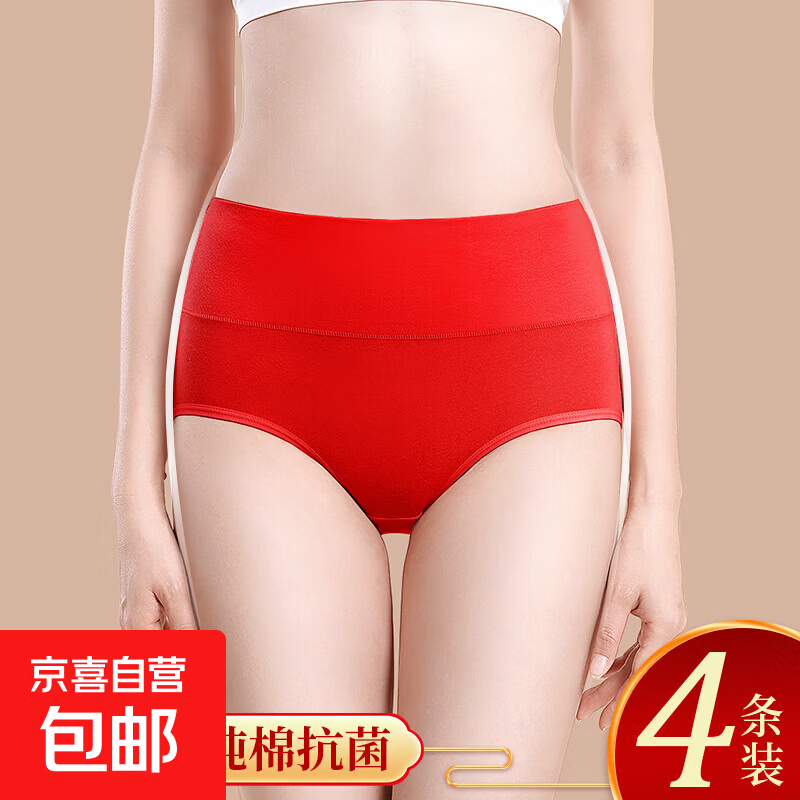 本命年女式三角内裤纯棉大红色女生高腰收腹裤结婚送礼2026年新款 1条-红色 XL 120-145斤
