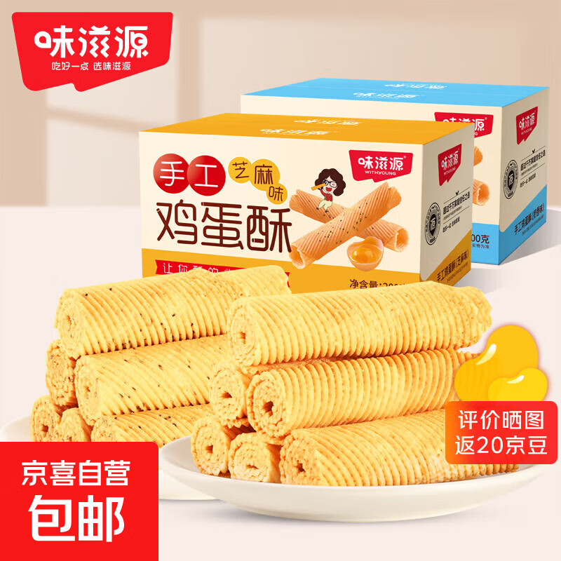 味滋源老式鸡蛋酥饼干黑芝麻奶香味箱装办公下午茶传统休闲零食 鸡蛋酥200g*1箱【口味随机】