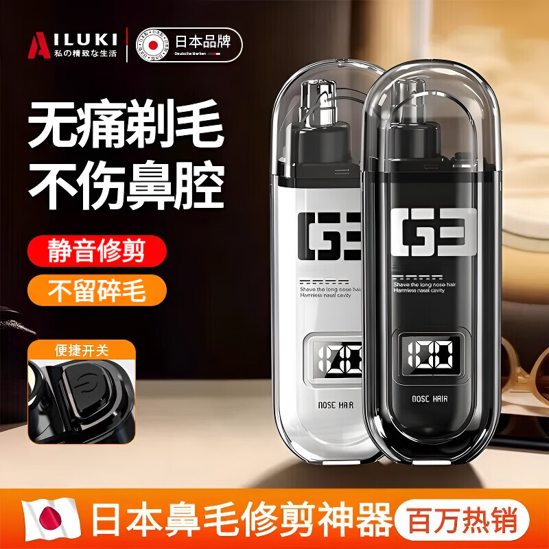 AILUKI【日本】鼻毛修剪器电动男生女士充电款无痛剪刀神器可水洗修理 【曜夜黑】旗舰数显-闪充款【静音修剪 不留碎毛】