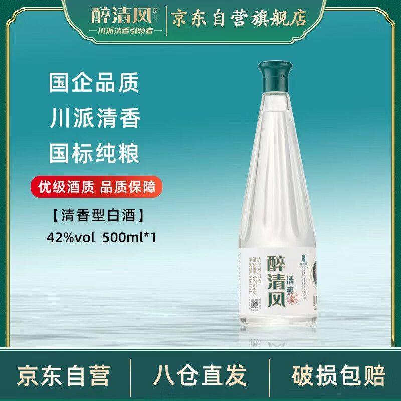 醉清风清爽清香型白酒42度500ml光瓶酒固态纯酿节日送礼