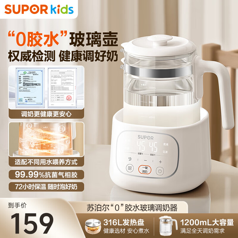 苏泊尔(SUPOR)恒温水壶婴儿调奶器0胶水恒温壶冲奶玻璃壶泡奶保温烧水热水壶 【重磅新品】0胶水调奶器 1.2L