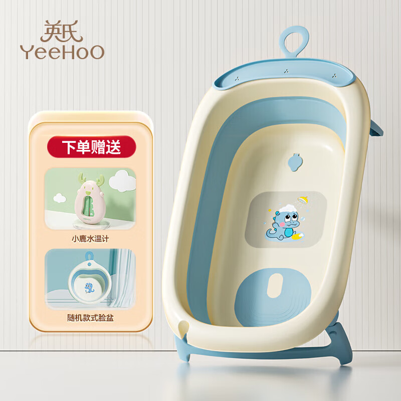 英氏(YEEHOO)婴儿洗澡盆宝宝澡盆儿童用品坐躺新生折叠家用婴儿折叠浴盆 天蓝色